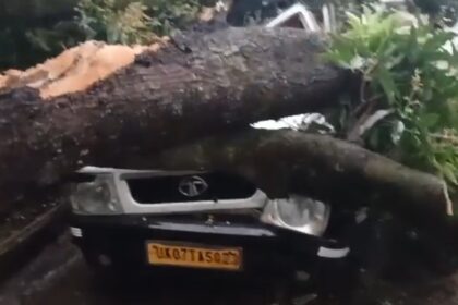 भारी बारिश और तूफान से वाहन हुआ क्षतिग्रस्त, बड़ी दुर्घटना होने से टली