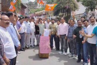विधानसभा सत्र बाधित करने पर भड़की भाजपा, कांग्रेस का फूंका पुतला