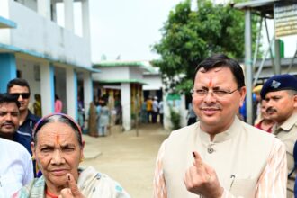 नगला तराई में पंक्तिबद्ध होकर मतदान किए सीएम धामी, ग्रामीणों से उत्साहपूर्वक वोट की अपील