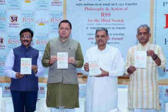 सीएम धामी ने फिलॉसोफी एंड एक्शन ऑफ़ आरएसएस फॉर हिन्द स्वराज का लोकार्पण किया