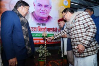 अटल बिहारी वाजपेयी जयंती की पूर्व संध्या पर भाजपा कार्यालय में सीएम धामी ने किया दीप प्रज्वलन