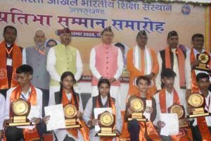 मुख्यमंत्री पुष्कर सिंह धामी ने रविवार को नैनीताल के पार्वती प्रेमा जगाती सरस्वती विहार में विद्या भारती अखिल भारतीय शिक्षा संस्थान उत्तराखंड द्वारा आयोजित प्रतिभा सम्मान समारोह में उत्तराखंड बोर्ड की परीक्षा में विद्या भारती विद्यालयों के उत्कृष्ट स्थान प्राप्त अभ्यर्थियों को सम्मानित किया।