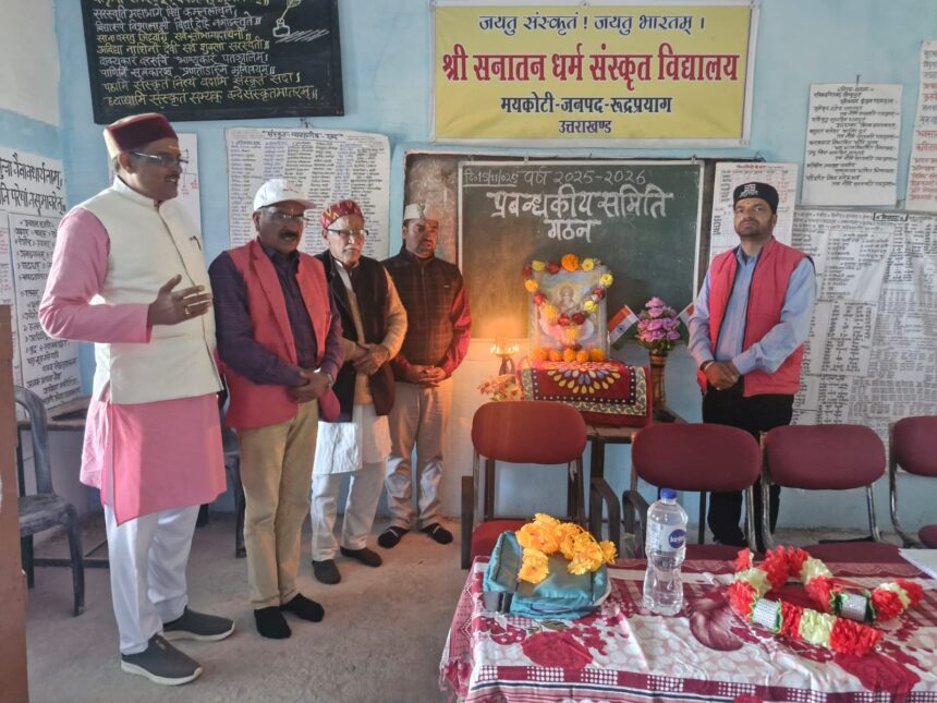 तल्ला नागपुर स्थित सबसे पुराने और ऐतिहासिक श्री सनातन धर्म संस्कृत महाविद्यालय, मयकोटी की शनिवार को नई प्रबंधन समिति का विधिवत गठन हो गया है। श्री सनातन धर्म संस्कृत महा विद्यालय मयकोटी की प्रबंधन समिति का चुनाव पर्यवेक्षक श्री नवीन नौटियाल प्रधानाचार्य संस्कृत विद्यालय कुर्झण तथा चुनाव अधिकारी श्री सत्येंद्र नौटियाल की देख रख में सम्पन्न हुआ। इस अवसर पर चंद्र मोहन वशिष्ठ को सर्व सम्मति से अध्यक्ष, मनवर सिंह बासकंडी को उपाध्क्ष,श्री शम्भू प्रसाद वशिष्ठ को प्रबन्धक, श्री कृष्णानंद वशिष्ठ को उप प्रबन्धक एवं श्री राकेश सेमवाल को कोषाध्यक्ष चुना गया। इस अवसर पर प्रधानाचार्य श्री उमेशचन्द्र भट्ट ने विद्यालय हितमें सहयोग की अपेक्षा की। अध्यक्ष चंद्र मोहन वशिष्ठ ने बताया कि महा विद्यालय की स्थापना वर्ष 1927 में की गई थी। नई प्रबंधन समिति द्वारा महाविद्यालय के शताब्दीवर्ष पर भव्य कार्यक्रम आयोजित किए जाएँगे।