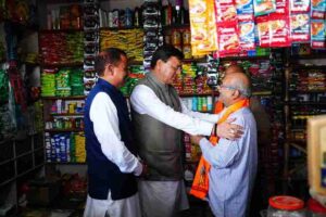 मुख्यमंत्री पुष्कर सिंह धामी ने बुधवार को देहरादून के कुँआवाला बाजार में स्वदेशी अपनाओ तथा जीएसटी की नई दरों के व्यापक प्रचार-प्रसार हेतु जनजागरूकता कार्यक्रम के अंतर्गत बाजार भ्रमण किया। इस दौरान मुख्यमंत्री ने दुकानदारों एवं स्थानीय नागरिकों से बातचीत कर उन्हें स्वदेशी उत्पादों के उपयोग के लाभों और कर प्रणाली में हाल ही में लागू की गई नई दरों के संबंध में जानकारी दी।