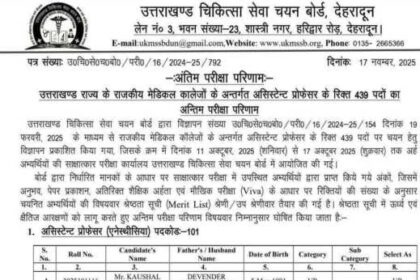 राजकीय मेडिकल कॉलेजों में असिस्टेंट प्रोफेसर भर्ती परीक्षा का परिणाम जारी