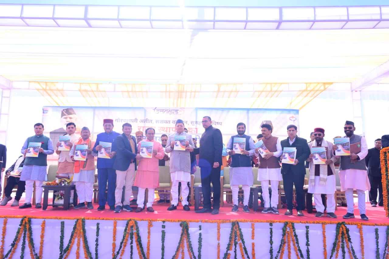 मुख्यमंत्री  पुष्कर सिंह धामी ने सोमवार को उत्तराखण्ड के रजत जयंती वर्ष के उपलक्ष्य में राज्य की ग्रीष्मकालीन राजधानी गैरसैंण (भराड़ीसैंण) में आयोजित कार्यक्रम में प्रतिभाग किया। विधानसभा परिसर में आयोजित कार्यक्रम के दौरान मुख्यमंत्री ने राज्य आंदोलन के शहीदों को श्रद्धांजलि अर्पित की। इस अवसर पर उन्होंने राज्य आंदोलनकारियों को शाल ओढ़ाकर सम्मानित भी किया। कार्यक्रम के दौरान मुख्यमंत्री ने जनपद की 142.25 करोड़ रुपये की विकास योजनाओं का लोकार्पण एवं शिलान्यास भी किया, जिनमें 43.63 करोड़ की 27 विकास योजनाओं का लोकार्पण तथा 98.62 करोड़ रुपये की 33 विकास योजनाओं का शिलान्यास शामिल है।